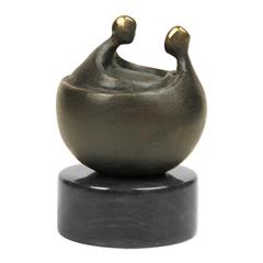 Sculptuur dat is verbronsd en geplaatst op een hardstenen sokkel. De kunstenaar Corry Ammerlaan beeld met het sculptuur uit dat iets voor ELKAAR betekenen een enorm fijn gevoel geeft.